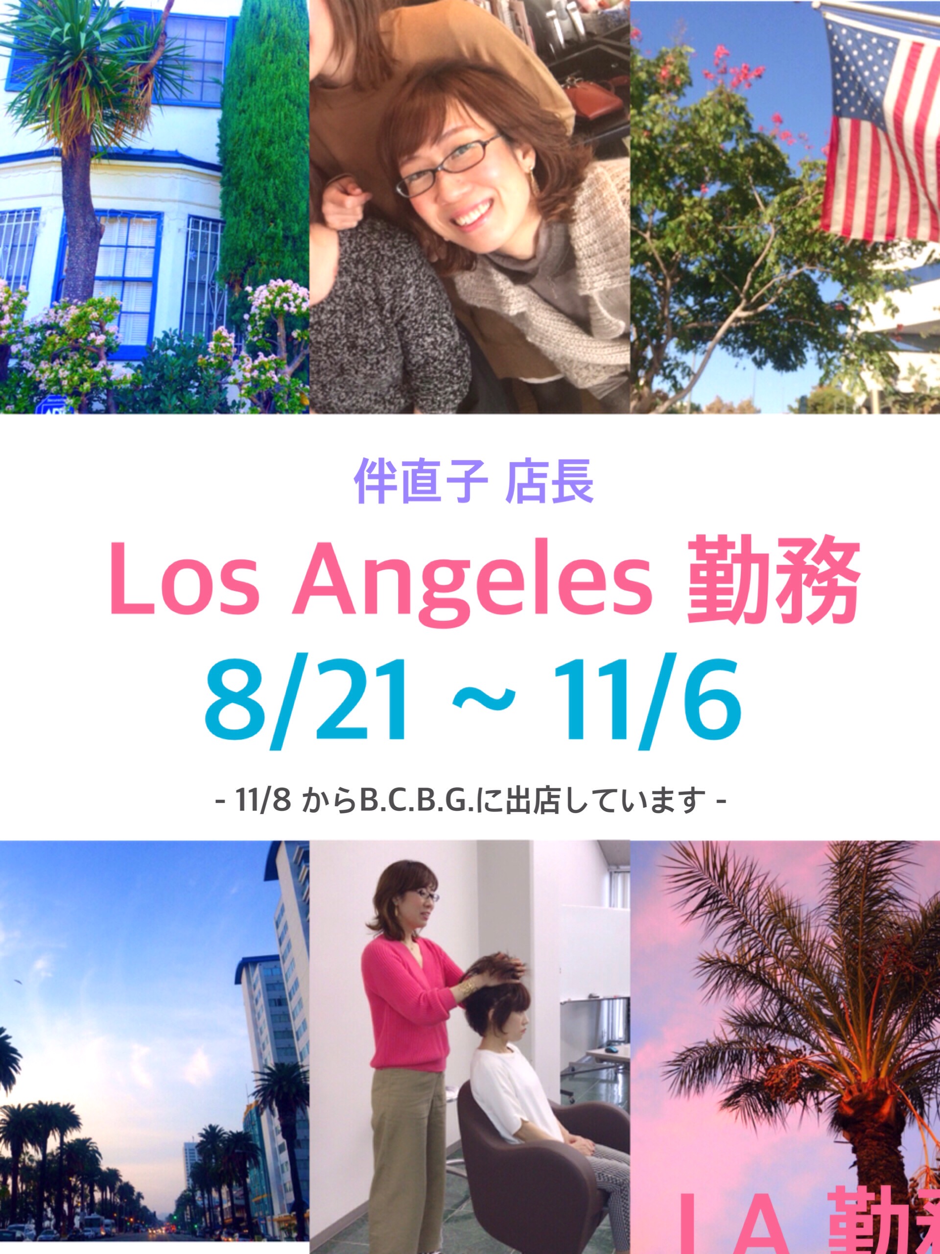 8月21日~11月6日まで伴 直子店長がロサンゼルス店勤務となりましたemoji